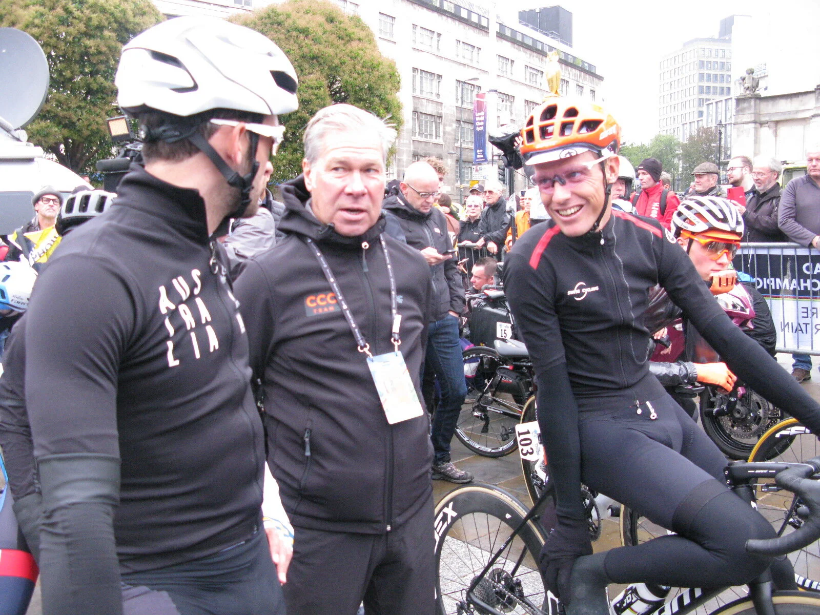 Calm Before The Storm: As the Men's Elite World Road Championship peloton assembled before the start in Leeds, there was a sense of deja vue for some riders, as the site for the start was Millenium Square, just where the Tour de France had started 5 years previously.